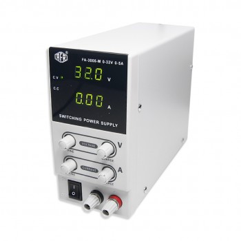 Equipamento digital de bancada, com dois displays de 3 dígitos (tensão e corrente), capaz de fornecer uma saída variável com tensão de 0 a 32V DC e corrente de 0 a 5A DC. Possui ajuste de tensão e corrente ajustado por potenciômetro, além de proteção contra sobrecarga, curto circuito, super aquecimento e inversão de polaridade. Garantia de 1 ano!